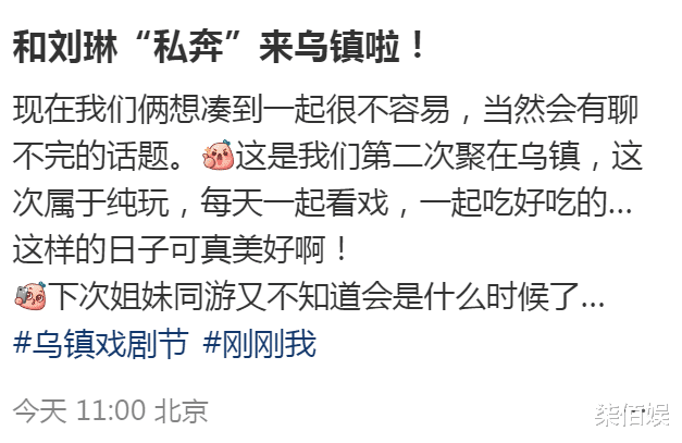 到达乌镇坐上不雅光车的梅婷,和刘琳依旧聊个胁制。她欣喜默示此次是继11年之后又一次弃家舍业,抛夫弃子,俩东说念主悄悄跑出来玩了,别提多重生了。 比拟无穷无穷说胁制的梅婷,刘琳天然没若何讲话,但关于闺蜜的俏皮用词,她被逗得直乐。